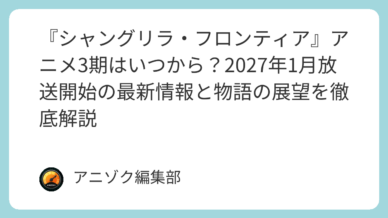 続編決定・期待したいアニメ一覧 『シャングリラ・フロンティア』アニメ3期はいつから?2027年1月放送開始の最新情報と物語の展望を徹底解説