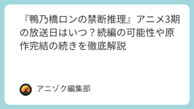 続編決定・期待したいアニメ一覧 『鴨乃橋ロンの禁断推理』アニメ3期の放送日はいつ?続編の可能性や原作完結の続きを徹底解説