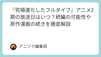 続編決定・期待したいアニメ一覧 『究極進化したフルダイブ』アニメ2期の放送日はいつ?続編の可能性や原作漫画の続きを徹底解説
