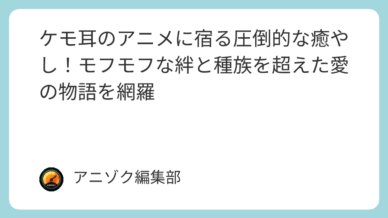 アニメ知恵袋 ケモ耳のアニメに宿る圧倒的な癒やし!モフモフな絆と種族を超えた愛の物語を網羅