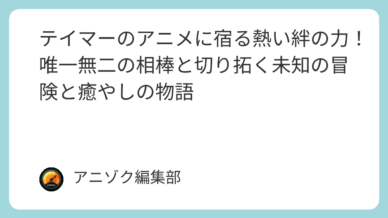 アニメ知恵袋 テイマーのアニメに宿る熱い絆の力!唯一無二の相棒と切り拓く未知の冒険と癒やしの物語