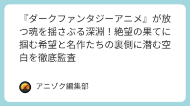アニメ知恵袋 『ダークファンタジーアニメ』が放つ魂を揺さぶる深淵!絶望の果てに掴む希望と名作たちの裏側に潜む空白を徹底監査